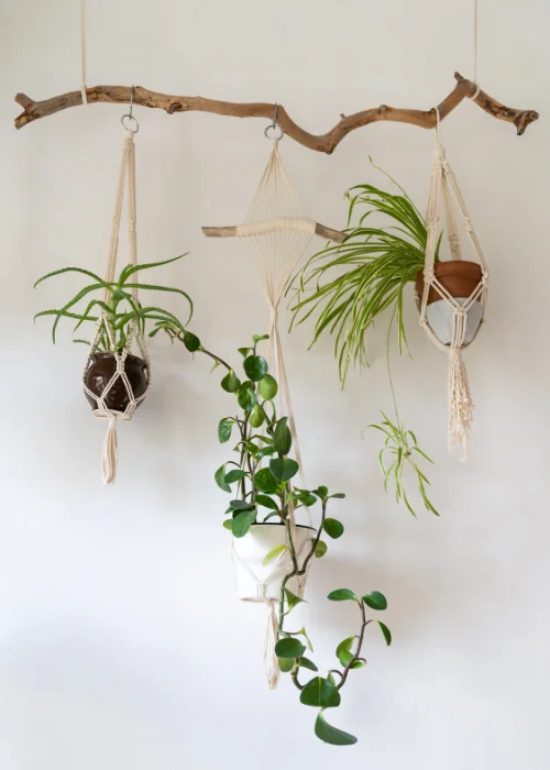 As plantas suspensas não apenas adicionam verde à sua sala, mas também criam movimento. À medida que suas folhas se estendem, você pode experimentar diferentes alturas e formas.