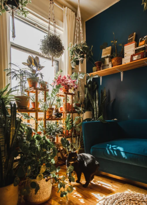 Se você possui uma sala ampla com tetos altos, tem a liberdade de optar por plantas maiores, como palmeiras ou árvores de interior.